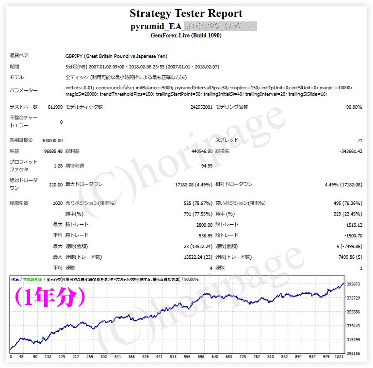 それでは実際に、EA『Pyramid_EA』の過去10年間以上のバックテストの結果を見ていきましょう。
